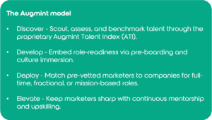 Today, Augmint is trusted by founders, boards, and CMOs to assemble, calibrate, and scale marketing teams for peak performance. If you’re a company looking to build a winning marketing team – or a marketer ready to grow your craft and career – Augmint is where performance meets purpose. From potential to performance – that’s the Augmint promise.